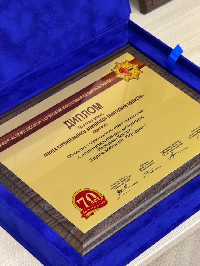 И снова приятные новости! ГК Меридиан был удостоен почетного звания "Элита строительного комплекса Тюменской области" в рамках конкурса «Лучшие достижения в строительной отрасли Тюменской области за 2024 год»