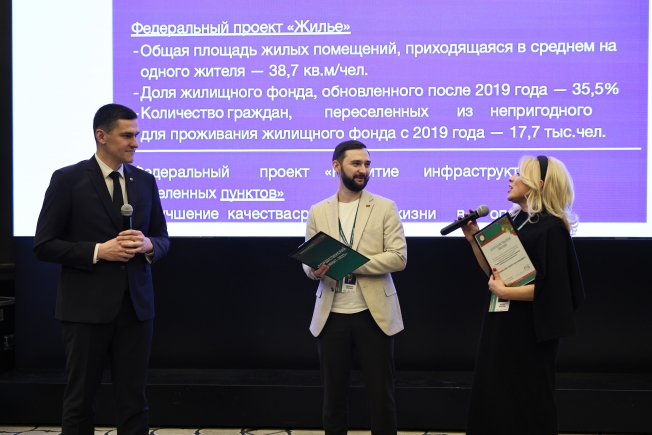 Застройщик «Меридиан» в лице Александра Ермолаева выступил соведущим вице-президента РГУД и организатора мероприятия Натальи Девятковой.