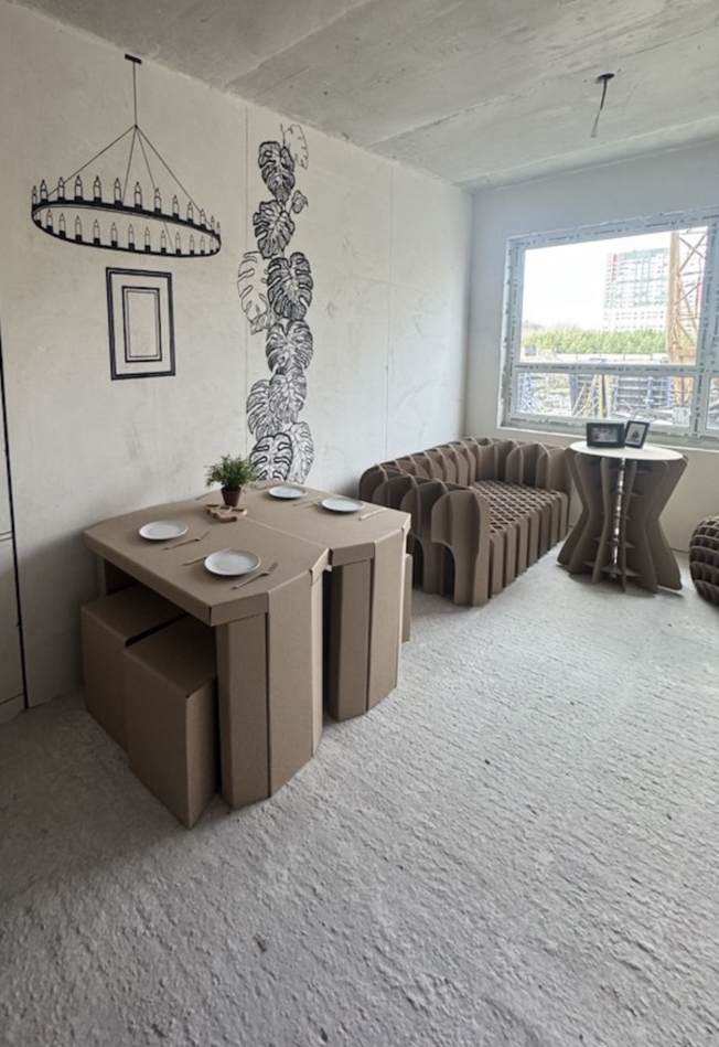 - Эко-философия как стандарт: Мебель из картона выбраны с акцентом на экологичность и осознанное потребление.