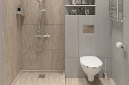 - Полная отделка санузла: плитка, инсталляция с унитазом, смеситель для душа.